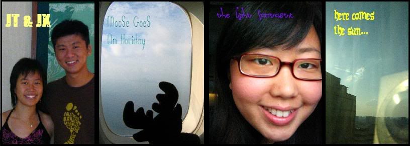 and catch a glimpse of the last few hours in the city of my birth. from left to right: bestie jt and her boy jx (awwwww!); the story of how the yellowstone MOOSE went on holiday; the unforgiving light of the airplane cabin and the wonderful evening light over the city.